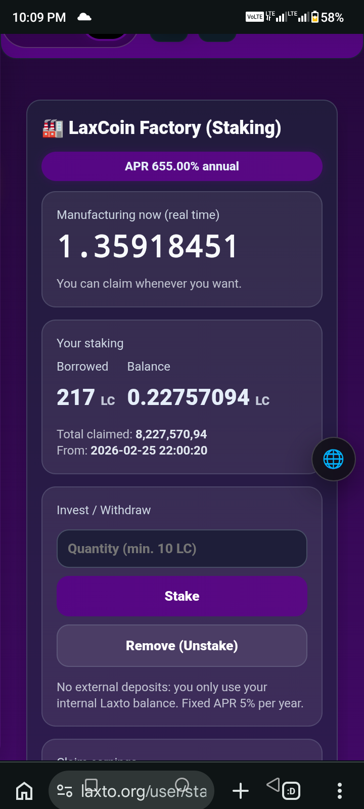 Total: 0 LaxCoin